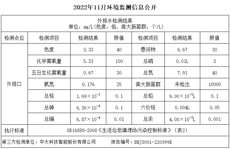 长沙市污水处置惩罚厂污泥与生涯垃圾清洁燃烧协同处置惩罚二期工程项目2022年11月排放烟气...