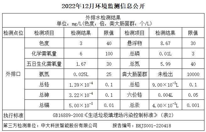 长沙市生涯垃圾深度综合处置惩罚(清洁燃烧)项目2022年12月排放烟气重金属检测报告