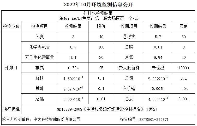 长沙市生涯垃圾深度综合处置惩罚(清洁燃烧)项目2022年10月地下水体检测报告